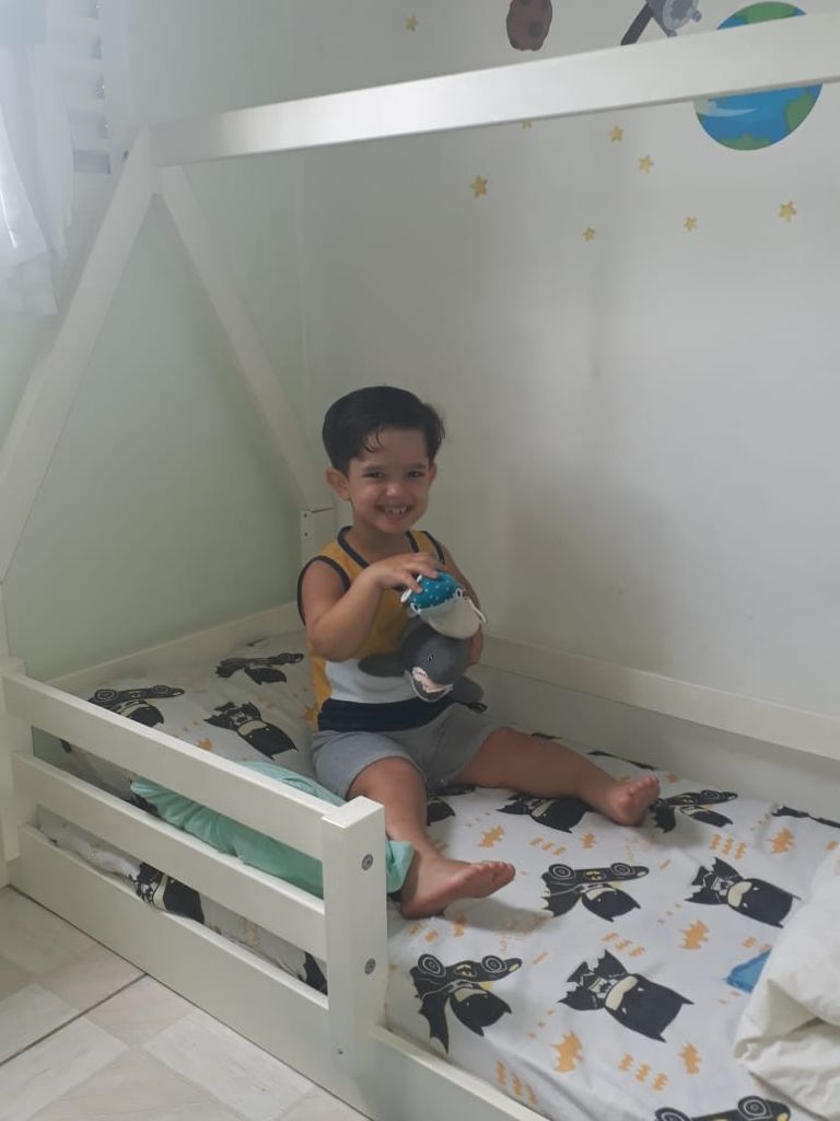 •  Cama no nível do chão: no quarto do Enzo, a cama é do tipo Montessoriana, ou seja, em nível baixo. Pois assim estimula a evolução e desenvolvimento da criança através da liberdade e autonomia e ir para a cama e sair dela quando quiser. Além, é claro, de ser mais segura e evitar quedas.