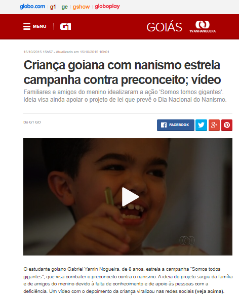 Criança goiana com nanismo estrela campanha contra preconceito; vídeo