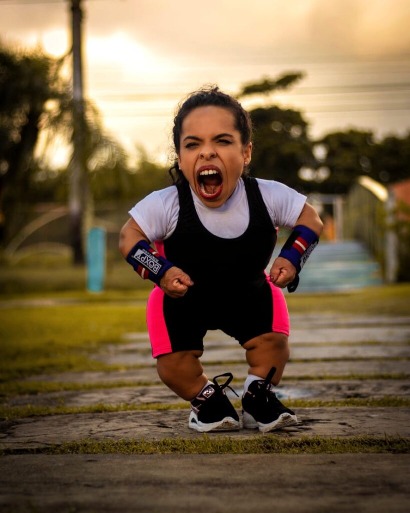 Ela conheceu o halterofilismo paraolímpico há 3 anos, após acompanhar um amigo que é cadeirante numa atividade física. “Quando entrei na sala de treinamento, o professor Felipe Aidar me recebeu com um sorriso enorme e me perguntou se eu iria treinar com eles. Eu respondi que não, por acreditar que aquilo não era pra mim. Ele, então, me mostrou vídeos de pessoas com nanismo que são campeões mundiais e me convenceu a fazer o teste. Todos ficaram surpresos quando me viram levantar uma barra de 20 quilos”, lembra a paratleta.