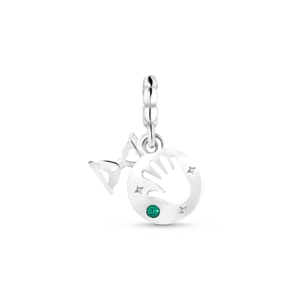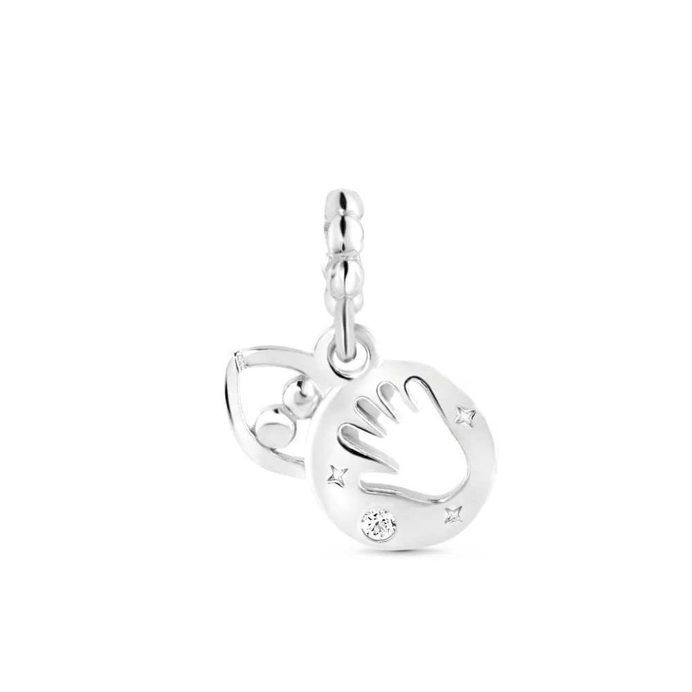 Enxergar com o coração é a inspiração para o pingente que, com desenhos de mão e olho, simboliza o conhecimento do mundo através do tato. O sentir também é uma forma de diálogo. A cor amarela remete à sensação agradável do calor do sol na pele, além de trazer otimismo e positividade.