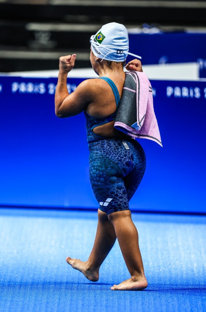 “Meu objetivo era só nadar melhor que de manhã. A medalha, eu sempre falo, que é consequência. Quando eu caio numa piscina sou eu contra eu mesma, não eu contra as meninas que estão nadando, então eu tô muito feliz. É minha primeira medalha paralímpica, eu não esperava. Melhorei meu tempo e esse era meu objetivo. Minha medalha tem sabor de ouro. Primeira paralimpíada, primeira medalha. Ainda vou nadar mais, vamos continuar torcendo”.