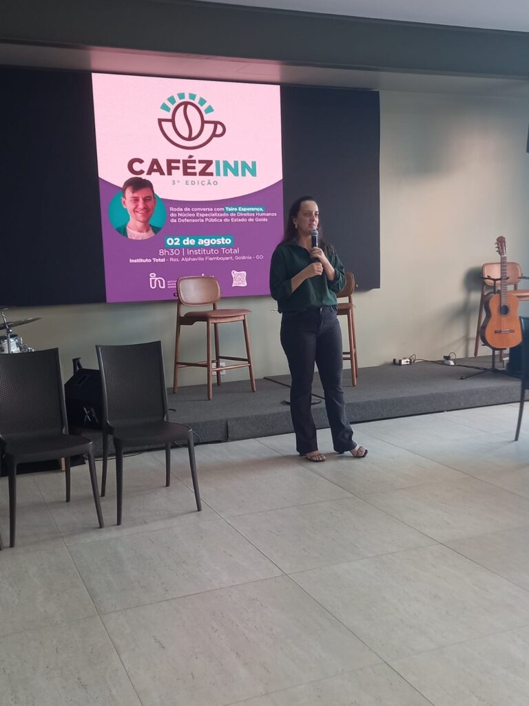Os direitos da pessoa com deficiência foram discutidos neste sábado (2) durante a 3ª edição do CafézINN, evento realizado pelo Instituto Nacional de Nanismo (INN). Como convidado principal: Tairo Batista Esperança, coordenador do Núcleo de Direitos Humanos (NUDH) da Defensoria Pública de Goiás (DPE-GO), defensor público no estado de Goiás e mestre em Direitos Humanos pela Universidade de São Paulo (USP). O encontro, realizado no Instituto Total, em Goiânia, contou ainda com a participação da consultora do Sebrae Goiás Lorena Carvalho, que anunciou uma parceria com o INN para empregabilidade.